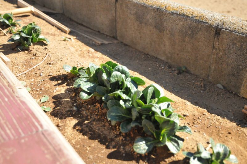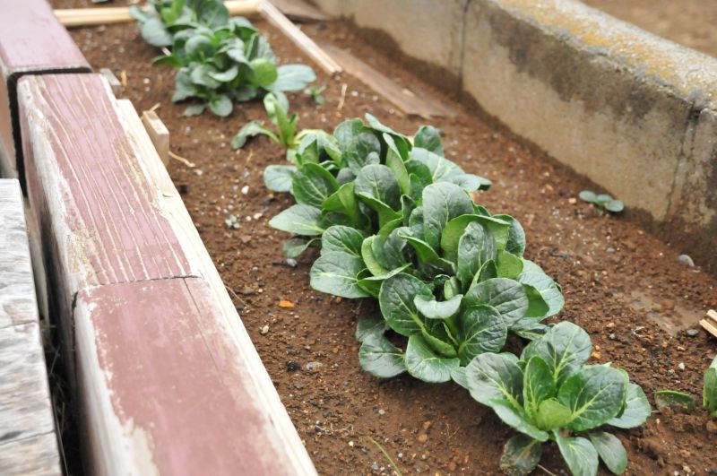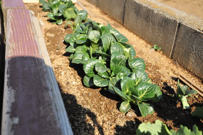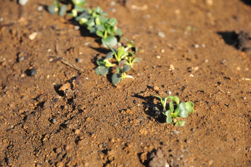 あっという間に大きくなり、次々に実をつける夏の野菜っ違って、冬から春先の野菜は比較的にゆっくり、気温と天気を味方につけながら上手に育っているような気がします。霜や雪、空っ風にさらされてぎゅっと甘みを増す冬。暖かい日には大きくなって、また冷える日を繰り返す春先。そんな季節をけなげに逞しく育つ小松菜の成長です。