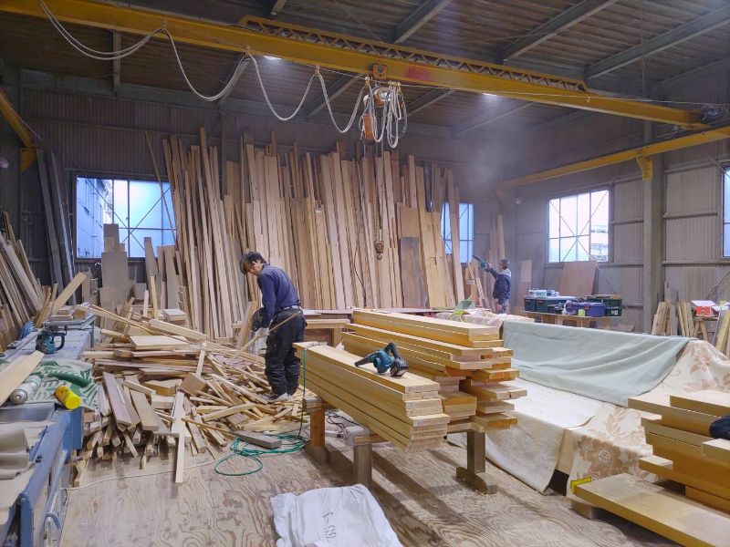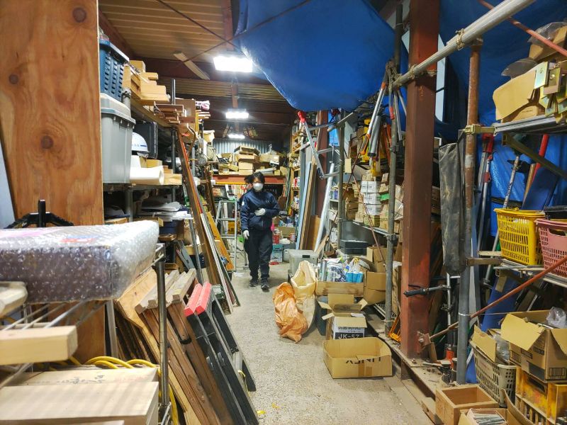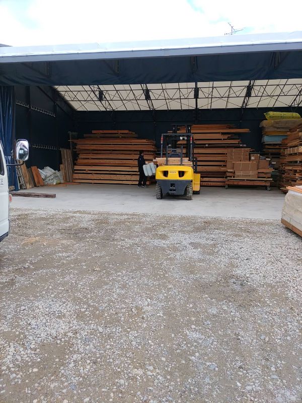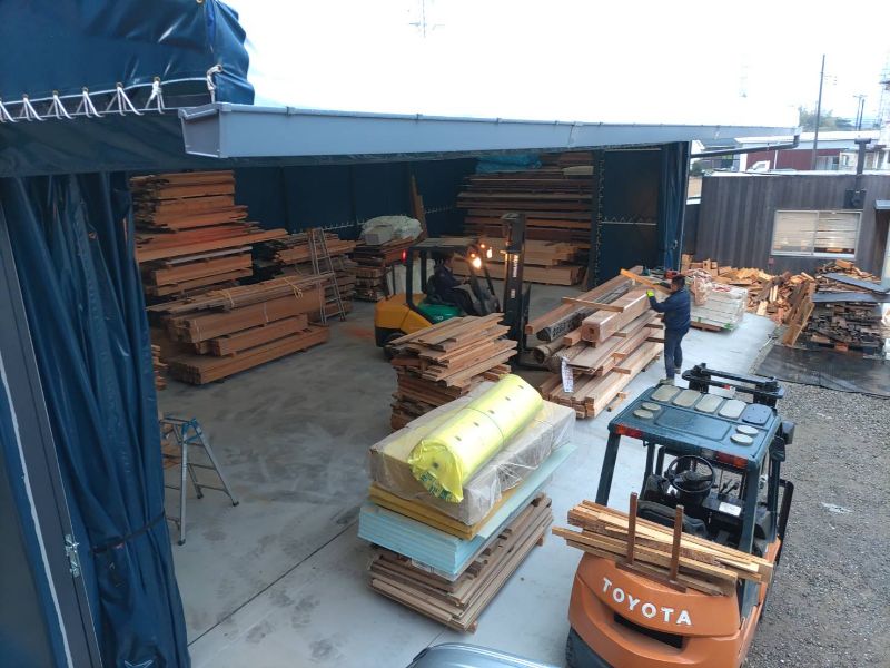 今年は、大きな資材置き場が松戸市工匠の駐車場に建てられました。大掃除の前までにと工場に置かれていた多くの木材がそちらに移動いたしました。