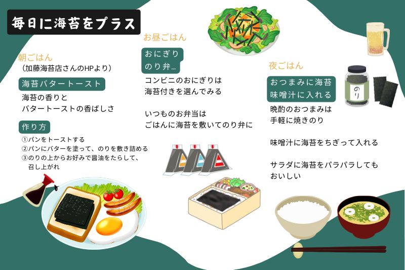 少しずつ毎日海苔を取り入れるのって意外と簡単です。
