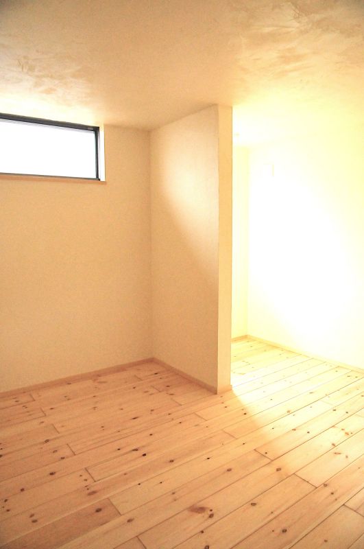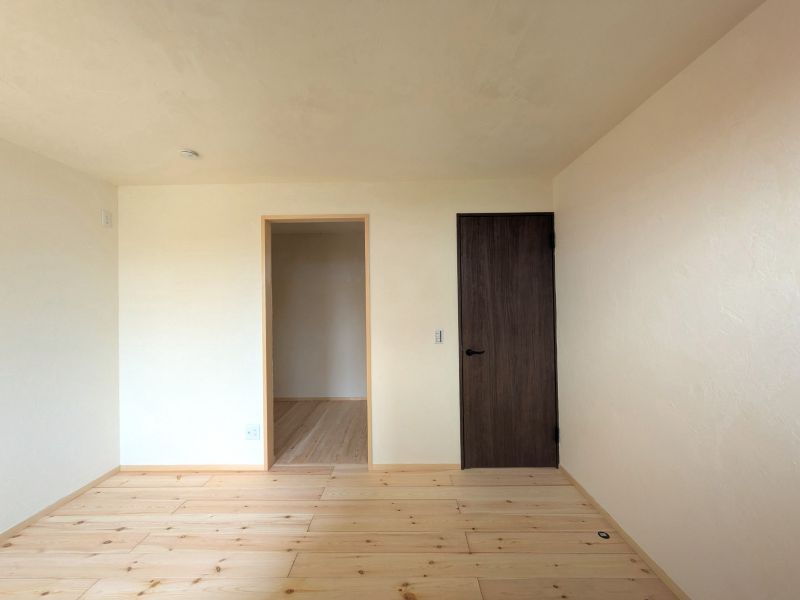 ▼2階主寝室。大きなウォーインクローゼット。2階はパイン材30㎜厚の無垢床です。